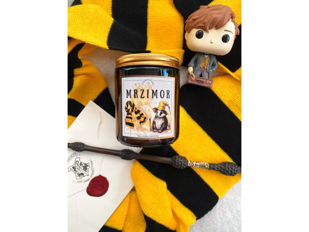 - Sójová svíčka se znaky Mrzimoru s vůní citronu